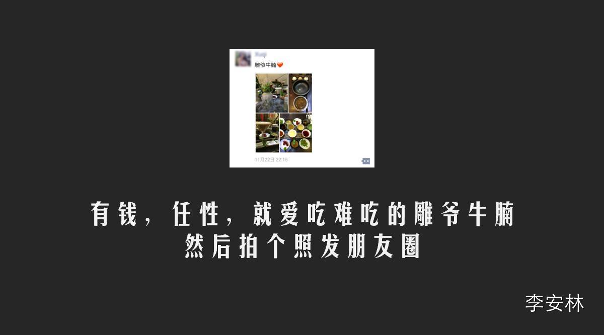 雕爷牛腩是一个被战略化的产品,而这个主导战略的人就是雕爷本人,通过借势,还有他精湛的PPT技术与笔头功夫,占领互联网思维的制高点。雕爷牛腩红了,河狸家也来了,VC风投也来了,大把的银子也都砸过来了。大熊同学说雕爷牛腩太难吃了,辣么,听听白领一族对雕爷牛腩的内心独白:“有钱,任性,就爱吃难吃的雕爷牛腩,然后拍个照发朋友圈”。