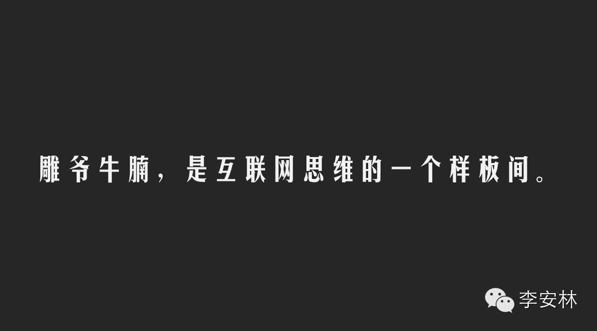 雕爷牛腩是互联网思维是一个样板间,某种程度它承载了无数屌丝们的创业梦想与希望,如果雕爷牛腩完蛋了,将会加速互联网思维的多米诺骨牌的倒塌,很显然倡导“互联网思维”的科技巨头不会将这一场运动退潮,只会加速与聚变。