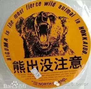 熊是日本北海道的标志性动物,由于那里野熊比较多,去到北海道的游客都会互相提醒小心野熊出没。后来熊出没就被当地引申成了警示标语,再后来这条警示标语被商家注册了商标,黄底黑字,做在T恤、酒杯等许多商品上,成了日本北海道的一个特色。